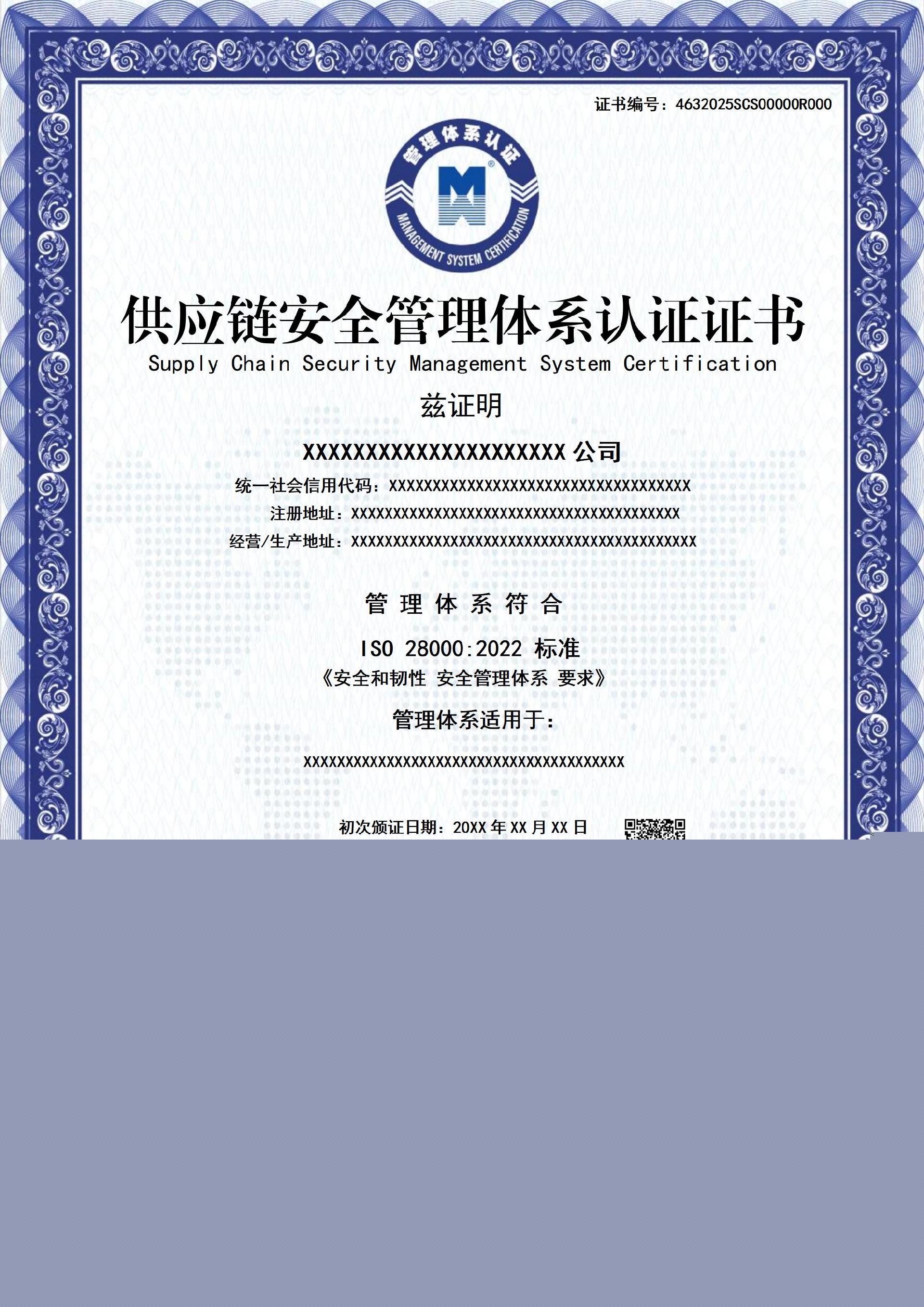 供應(yīng)鏈安全管理體系認(rèn)證證書-樣版
