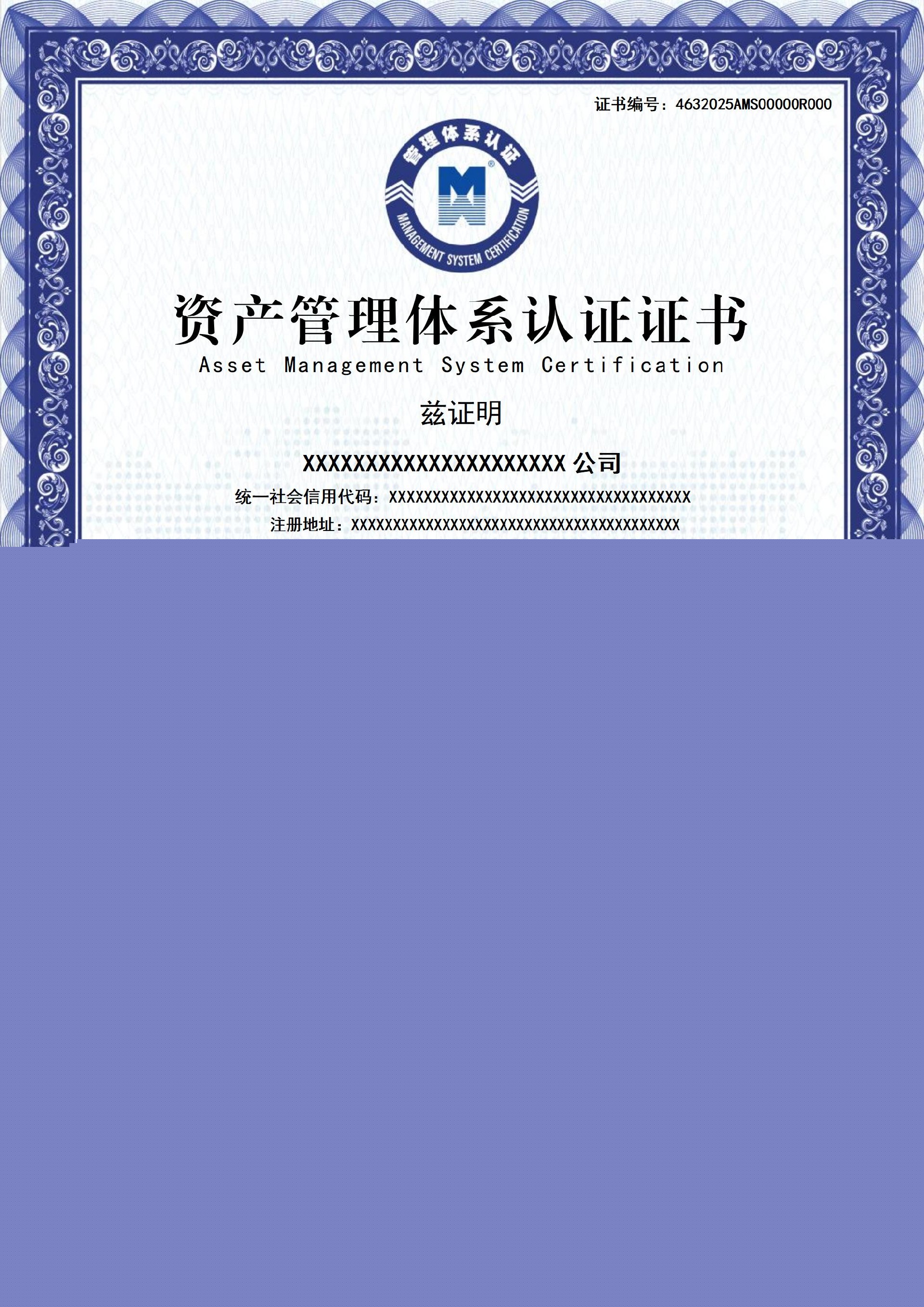 資產(chǎn)管理體系認(rèn)證證書-樣版